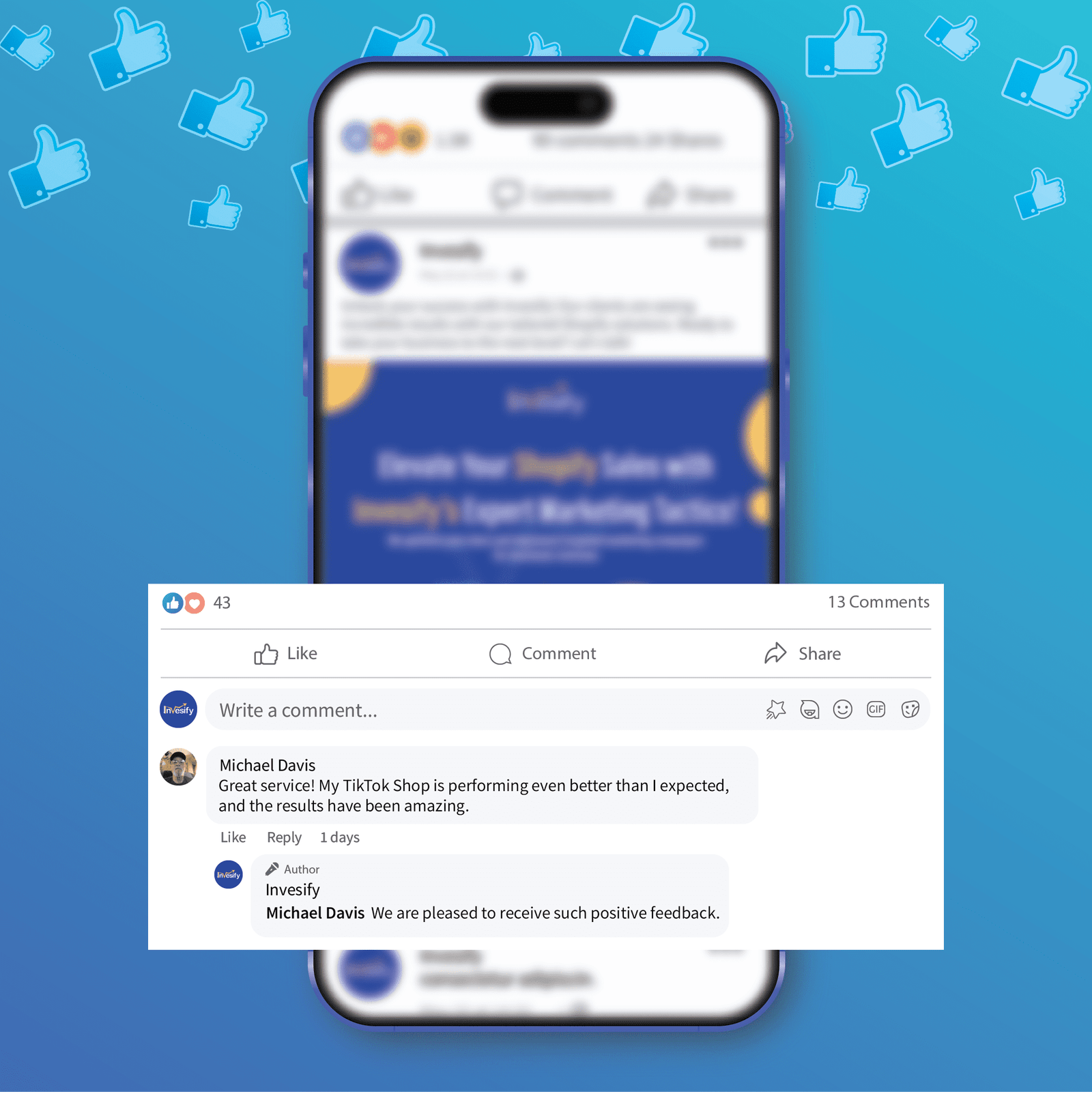 Invesify has completely transformed my TikTok Shop. Their expert group managed each detail, from product selection to marketing strategies. My sales have doubled, and my brand is more visible than ever. Really a phenomenal service!