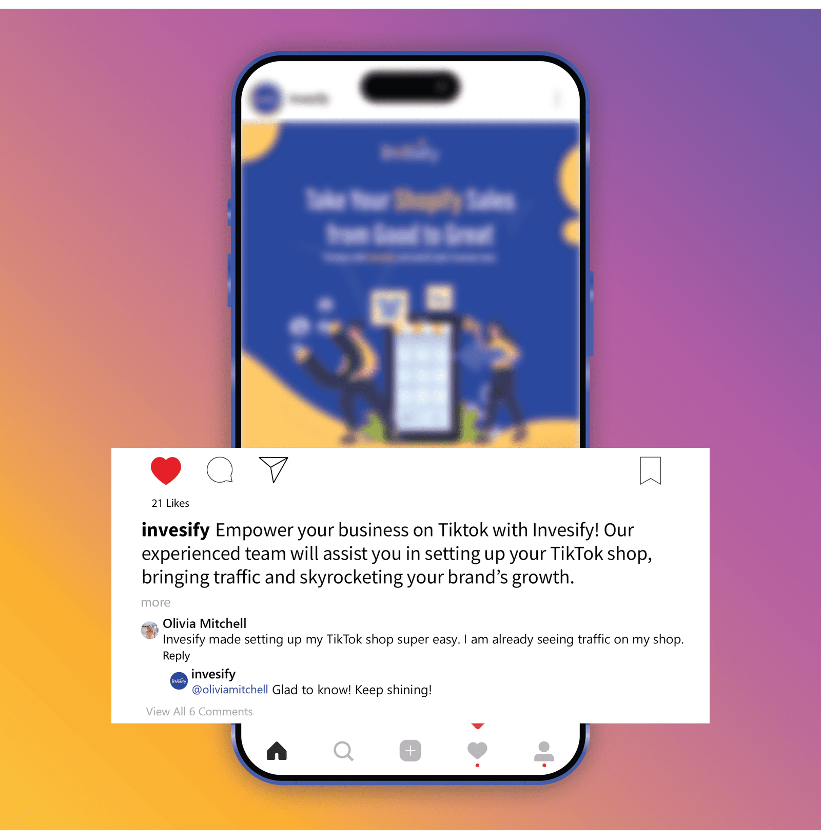 I was skeptical about starting a TikTok Shop, but Invesify made the process smooth and effective. Their team's creativity and promoting know-how have driven my sales through the roof. I am so glad I chose Invesify to launch my tiktok shop!